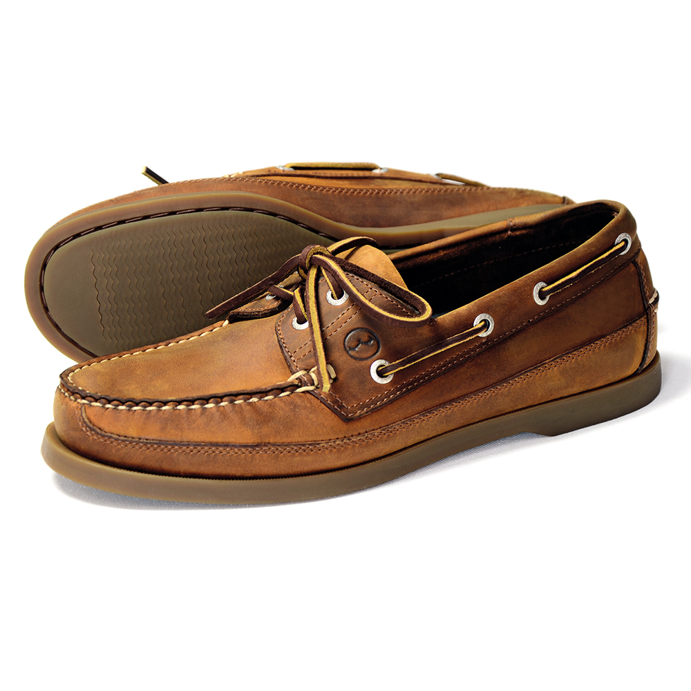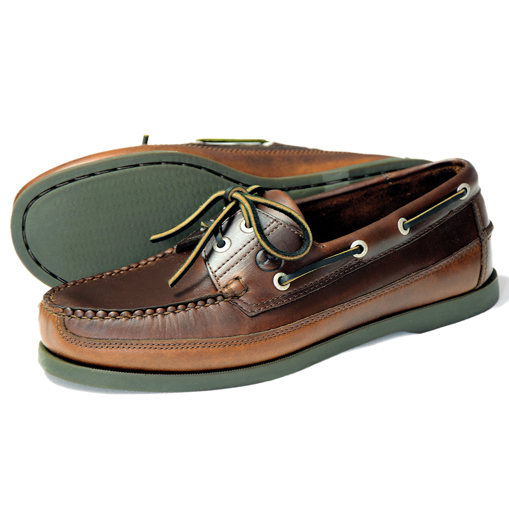 A classic deck shoe with a canoe cut.