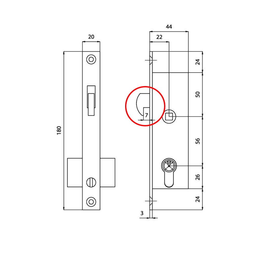 OPAC SLIDING DOOR LOCK 7mm